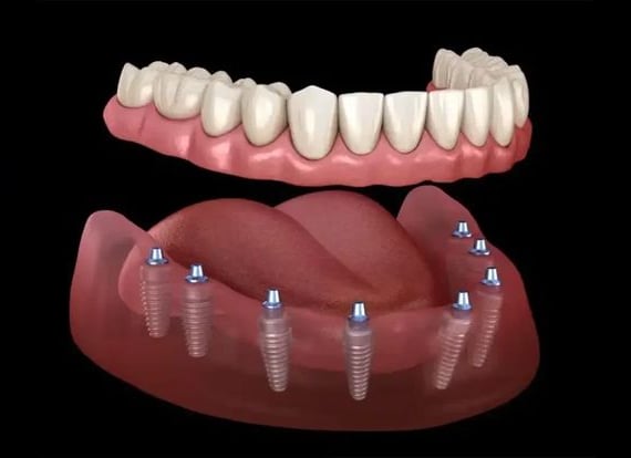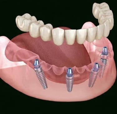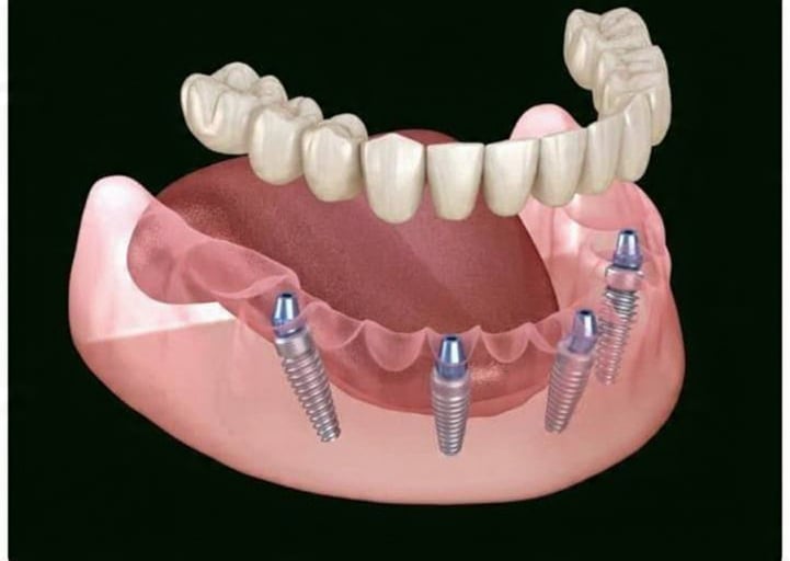 Cuando restauramos todos los dientes ya sea en su maxilar superior o mandíbula. Puede ser de 4 y 6 depende de la prótesis que se vaya a utilizar en cada paciente. Estas prótesis son fijas y son extraíbles solamente por un profesional.