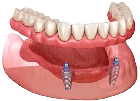 Este tipo de prótesis se utiliza en la mandíbula, son extraibles y se coloca por lo general 2 implantes. Estas prótesis se unen a una barra o a esferas que son pilares.